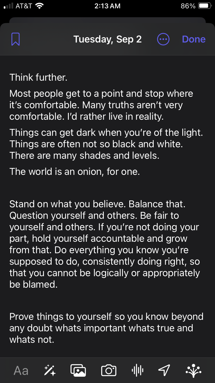 Accountability: Without it, things only get worse, spread further. I could have became like them. I saw signs in myself when i was younger. I still have damages im aware of from trying to adapt and cope with many abuses in childhood and so on. I work on that stuff everyday because i care who i affect as a human. i have actual empathy. my parents have proven they dont have that inside of them. ive been doing the work for so long. In a world i feel is full of infants that have no concept of what this experience would truly be like but will judge you at the drop of a hat and want to be angry or emotional in any direction that gives them feeling on a primitive level, and its all just par for the course and to be expected in this world.